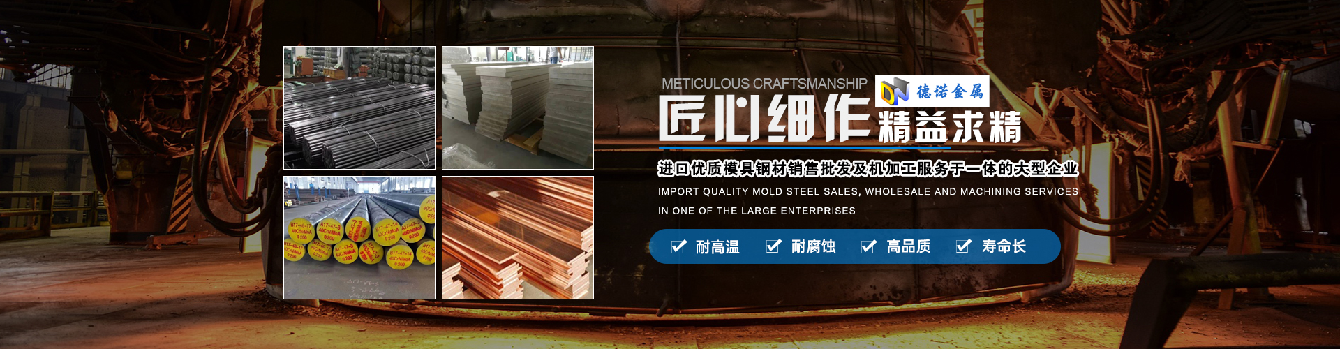 東莞市德諾金屬鋼鐵有限公司成立于2010年,立足于珠江三角洲,是一家集多家進口優質模具鋼材銷售批發及機加工服務于一體的大型企業。公司投大量資金與世界著名鋼廠簽立優特鋼經銷權,銷售國內著名鋼廠不銹鋼產品  經銷國際著名鋼廠進口產品。